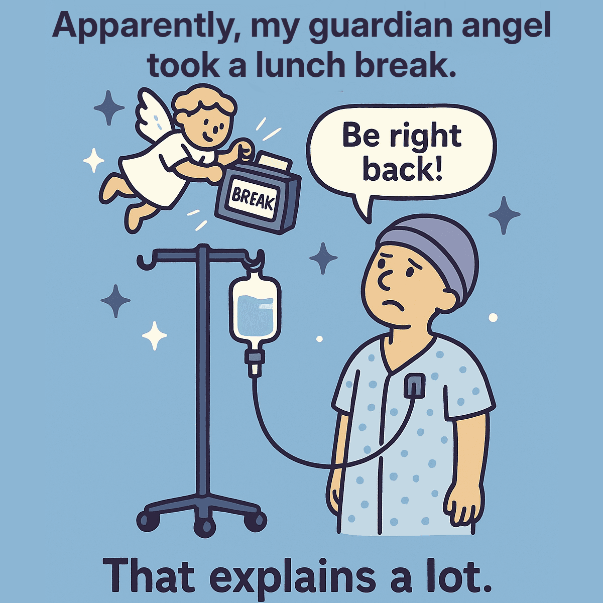 Sometimes the only way to explain the chaos of cancer is to assume your cosmic support staff went on strike — and this joke nails that feeling with painful accuracy.