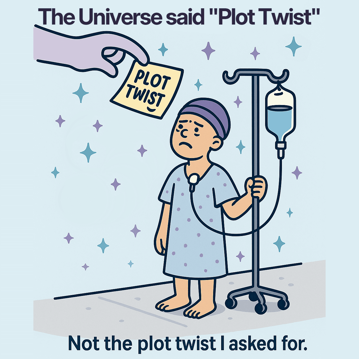 A giant cosmic hand drops a “PLOT TWIST” card into your life like a producer rewriting the script mid-scene, and you’re standing there in a hospital gown thinking: