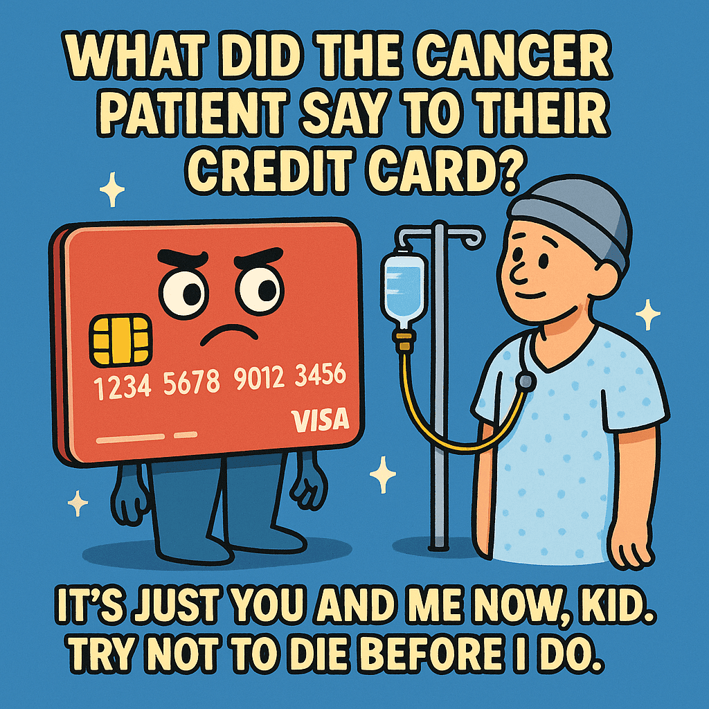 Cancer humor loves exposing the financial hostage situation we're all stuck in — and this joke captures that reality with a level of honesty most hospitals could never publish in a brochure.